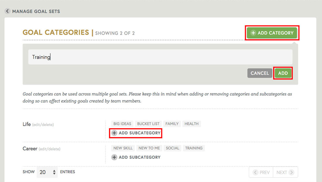 That's it! You've now set up Goal Categories in Teamphoria! You can now Create a New Team Member Goal Set and pull in Goal Categories to the form.