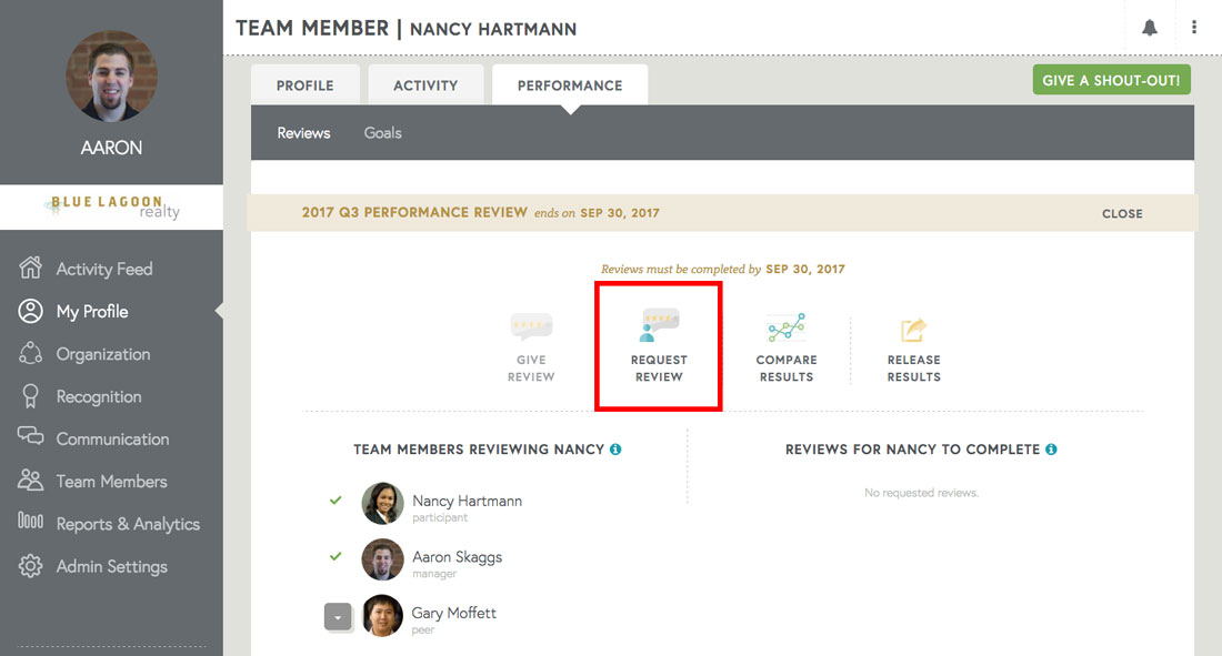 Please note: Please ensure you are on a team member’s performance profile and not your own performance profile when requesting this type of review.