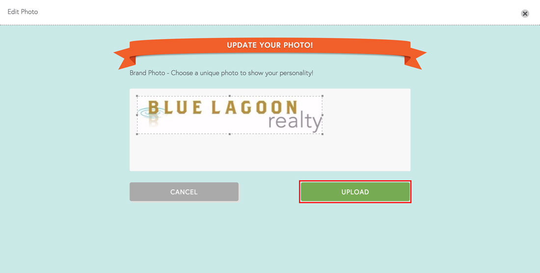 Step 5: Select and drag a box around the area of your new brand photo you want it cropped to. Select Upload once you're happy with the photo crop.